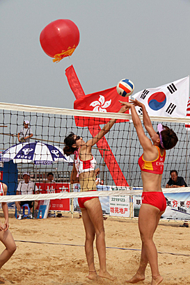 LAIZHOU – July 18th was the second competition day of 1st Asian University Beach Volleyball Championship. All the competitions of preliminary round for women ended. The most exciting match was played betweenTPE – OMA1 men’s team, where Team OMAN1 won 2:0 (37: 35, 21: 19). Almost every team had 3 games, which was quite a challenge for the athletes.