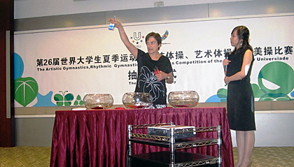 FISU CT Chair for Rhythmic Gymnastics, Josef Robert ZELLWEGER and FIG Technical Delegate for Aerobics, Mireille GANZIN were present to host the drawings respectively. FISU Assistant to Universiade, ZHAO Jing was also present to support the FISU Committee.