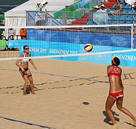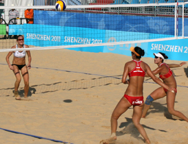 The 2011 edition of the Summer Universiade is the first to include beach volleyball in the competition. And at the picturesque beachfront venue, the athletes couldn’t be more excited