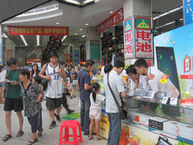 In China, there are lots of people in the streets everywhere.North Huanqiang Street is no exception. Pan, a Shenzhen citizen, gives the visitors a great hint. When you want to buy a good quality product, look at the stores where there are more people waiting in line, for surely this store is the place to buy it.