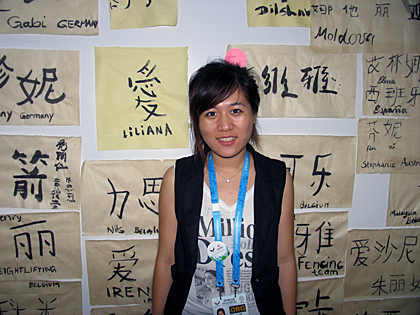 The center is quite spacious. The walls are covered by hieroglyphs, some – printed, others drawn in black ink by the athletes themselves. The visitor’s wall is almost entirely covered. There are two teachers, a Chinese girl in a flowing ethnic dress and some other staff. As I enter, a lesson is already taking place, and it becomes clear why the place is so popular among the international athletes community. A girl from Denmark listens attentively, as a teacher explains the basics of Chinese calligraphy. A sheet of paper bears the marks of the athlete’s attempts to master perhaps the most difficult handwriting in the world. She is closely watched by two Chinese journalists, one of them waits for a short radio interview once the athlete is finished.