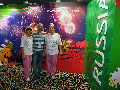 Arkadiy Karbayev, Director Social Event Department flanked by two of Kazan’s chefs