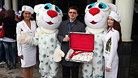 SAMARA – ‘The Universiade in Your City!’ train arrived in Samara. For one day, the city turned into a venue for youth events, meetings of students and official meetings aimed to promote the 2013 Summer Universiade and development of partnership between Samara and Tatarstan. At the railway station, the Kazan 2013 delegates received a warm welcome from volunteers, students of Samara State University with Rector Igor Noskov at the head, as well as Samara Region’s youth and sports ministry officials.