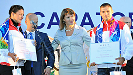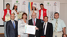 Two celebrated Russian athletes, Natalya Lobova and Sergey Ulegin, were appointed Kazan 2013 Ambassadors during one of the FISU Flag Relay’s events inSaratov. The students of the Chernyshevsky Saratov State University received their credentials from Kazan 2013 delegates.