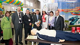 The ceremony was also attended by Professor Boris Polyaev, President of the Russian Association for Sports Medicine and Rehabilitation of Patients and Disabled, Member of the Medical and Scientific Commissions of the European Olympic Committees. He congratulated the exhibition attendees on the successful start of the exhibition and stressed its topicality in the context of the forthcoming 2013 Summer Universiade. «We are ahead of the Planet! I wish you good luck and strong health!», Boris Polyaev said.