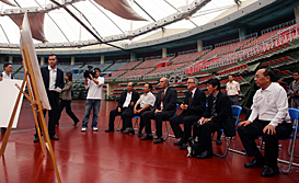 TAIPEI CITY – The inspection visit was continued and moved to the neighboring city and county on the third day. TheFISU evaluation committee was accompanied during the inspection by the deputy mayor, Mr. Tin-Yu TING; president of CTUSF, Mr. Kunning CHEN; FISU assessor, Mr. Tai-Cheng CHEN and some other directors from different positions and authorities. Competition venues for Artistic Gymnastics, Football, Volleyball, Water Polo, and Baseball were checked. Alternatives for Table Tennis and Swimming were also included into today’s program. 5 stops for 3 gymnasiums, 3 stadiums, 2 construction sites and 1 Athletes’ Village plus a luncheon by the premier Den-Yih WU, debriefing meeting chaired by the mayor Lung-bin HAU and one banquet hosted by the minister of sport Hsia-Ling TAI fulfilled the schedule from 9 am to 9 pm.