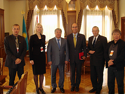 The first meeting shortly after their arrival was with Mr. Akhmetzhan Essimov, Mayor of Almaty. The Ddeputy Mayor of Almaty Serik Seidumanov and President of Kazakh Students Sports Federation Kairat Zakiryanov also participated in this meeting. Mr. Essimov confirmed a strong interest of Almaty to host the Winter Universiade in 2017.
