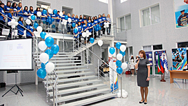 «If Kazanis called the sports capital of Russia, Nizhnekamsk can be called the sports capital of Tatarstan. The city has a well-established sports history that glorifies the city worldwide. One of the most graphic examples is Nizhnekamsk-born skier Alia Iksanova who earned four medals at the 2011 Winter Universiade in Erzurum. I’m confident that athletes from Nizhnekamsk will be called up to the Russian national team for Kazan 2013», said Chief of Staff of the Kazan 2013 Executive Directorate Larisa. «Volunteers are those on which any international events are judged:from arriving at the airport to departure. At each given moment of the Games it will be volunteers that the general atmosphere and mood of the Universiade will depend on, let alone the impression of our city and country that our visitors from different countries of the world will take home with them», said Larisa Sulima in her speech. She called upon all the students of Nizhnekamsk Municipal Institute to register online at www.makeUreal.kazan2013.com and join the ranks of Kazan 2013 volunteers.
