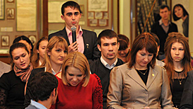 The meeting which was held in parallel with the ceremony of signing a trilateral cooperation agreement between the Government of the Republic of Tatarstan, Rector Council of the Republic of Tatarstan and Tatarstan’s Student League, took place in the main conference hall of Kazan (Volga Region) Federal University and saw the attendance of Tatarstan’s Cabinet members (Deputy Prime Minister and Minister of Informatisation and Communications of the Republic of Tatarstan Nikolay Nikiforov, Head of the Republican Press and Mass Communications Agency of the Republic of Tatarstan Marat Muratov), rectorial staff members, including Chairman of the Coordination Council of Pro-Rectors for Education Work under the Rectors Council of Tatarstan and Chief of Staff of the Kazan 2013 Executive Directorate Larisa Sulima, as well as student activists of Kazan, Naberezhnye Chelny, Nizhnekamsk, Yelabuga, Zelenodolsk, Chistopol.