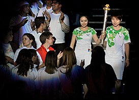 The forum’s culmination was an oath taking ceremony when two most recognizable volunteers of Kazan 2013 – Nelya Fakhrutdinova, a student of Kazan (Volga Region) Federal University who had been named the Volunteer of the Year 2011, and Alik Saifutdinov, a student of the Tupolev Kazan National Research Technical University – undertook a pledge to serve devotedly to their country and promote the ideas of university sports. After the ceremony, they accepted a symbolical ‘volunteer torch’ from their Chinese colleagues – volunteers of the 26th World University Games in Shenzhen.
