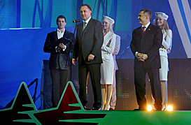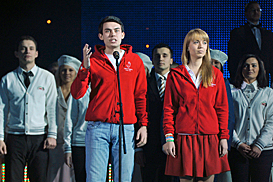 The show saw the attendance of merited worker of culture of the Republic of Tatarstan Mikhail Volkonadsky, popular singer Yulia Kovalchuk and First Channel’s TV presenter Yana Churikova. The two latter together with First Channel’s news reader Maksim Sharafutdinov and silver medallist of the Sydney Olympic Games Irek Zinnurov were revealed as Kazan 2013 Ambassadors. The credentials were given by Russia’s Sports, Tourism and Youth Policy Minister Vitaly Mutko and President of Tatarstan Rustam Minnikhanov.