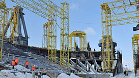 KAZAN – On Friday, March 16, Tatarstan President Rustam Minnikhanov visited the construction site of the 45,000-capacity football stadium being built in the run up to the 27th Summer Universiade and held a working meeting in the site office to discuss the facilities the stadium will be equipped with. The President was joined on his inspection tour by Prime Minister of Tatarstan Ildar Khalikov, Kazan Mayor Ilsur Metshin, Director General of the Kazan 2013 Executive Directorate Vladimir Leonov and other officials.