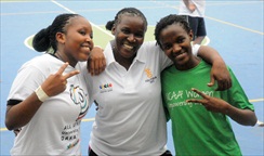 EC member Mrs Kabenge sided by representatives from South Africa after the sports session