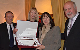 Roger Roth and Kairis Ulp with Marta Dalo Maso, Minister of Sport and Tourism form the Trentino Region (second from the right), together with Sergio anesi, Universiade Coordinator