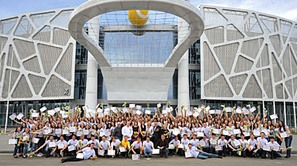 «You are definitely lucky people. Today you represent the elite of the Russian student community, and in one year you will be shining in the limelight in front of the cameras and be part of the Universiade’s most dramatic events,» Vlaldimir Leonov, Director General of the Kazan 2013 Executive Directorate, said in his speech. His words were met with support from two Kazan 2013 Ambassadors – Andrey Demanov, a European weightlifting champion, and Elena Posevina, an Olympic rhythmic gymnastics champion.