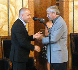 Adam Roczek presents an award to CAUS SG Vaclav Samberge