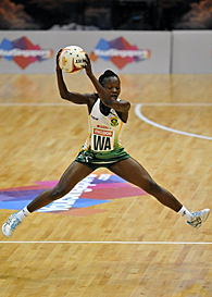 SPAR Protea player Bongiwe Msomi in action at the 2011 World Netball Championships in Singapore (Duif du Toit/Gallo Images)