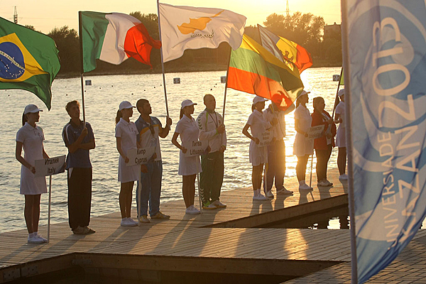 The ceremony was attended by Chairman of the 2012 FISU WUC Organising Committee and Tatarstan’s Minister of Youth Affairs, Sports and Tourism Rafis Burganov; 1st Deputy Chairman of the Russian State Duma Committee on Youth Affairs, Physical Culture and Sports and Secretary General of the Russian Olympic Committee Marat Bariev; FISU 1st Vice President and Russian Student Sports Union President Oleg Matsytsin; FISU Executive Committee Member Marian Dymalski; Director General of the Executive Directorate of the 27th Summer Universiade in Kazan Vladimir Leonov; Beijing Olympic silver medallist and Ambassador for the 2013 Summer Universiade Sergey Ulegin, as well as numerous guests, spectators, athletes and members of official delegations.
