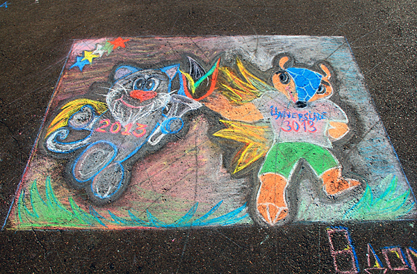 Every year the Universiade Village’s chalk art contest attracts a growing number of young people. This year was no exception. The central square of the Universiade Village brought together most gifted and enthusiastic students. All entries turned out to be truly unique and spectacular. The main characters on the pictures were athletes of the future and extraterrestrials. According to the contestants, the 3013 Summer Universiade will be again hosted by Kazan: they explained this vision by the fact that the capital of Tatarstan will keep the status of the sports capital in the years to come.