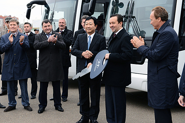 The cooperation between the Republic of Tatarstan and Hyundai Motor Company started as early as in 2005, said Vice Chairman of Hyundai Motor Company Choi Han Yeong in his interview with kazan2013.com. “Seven years ago we supplied buses for Kazan’s millennium celebrations, and this time when our partners offered us to act as a transport provider for the Universiade, we were happy to accept the offer,” explained Valentin Grechman, CEO of Hyundai ComTrans Rus Ltd. He also noted that the company always readily supports sporting events and sponsors a number of Russian sports clubs.