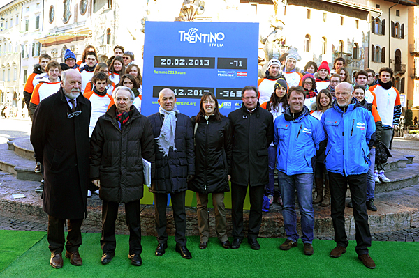 On December 11th, this historic square hosted a symbolic count down ceremony for the two events. The ceremony was attended by Sergio Anesi (Universiade OC President) and by the Tourism Councilor of the Autonomous Province of Trento Tiziano Mellarini (Fiemme 2013 OC President), together with Bruno Felicetti (Marketing Fiemme 2013), Marta Dalmaso (Sport Councilor of the Autonomous Province of Trento), Davide Bassi (Rector of the University of Trento), Alessandro Andreatta (Mayor of Trento), the Universiade OC members and a group of volunteers.