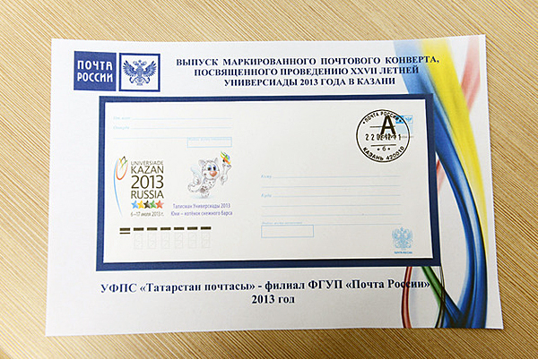 A ceremony of cancelling the stamped envelope bearing the logo of the 27th Summer Universiade took place as part of the opening ceremony as well. The Kazan 2013-logoed envelopes will be available for purchase at the new post office located at Building 11a, Universiade Village, Kazan.