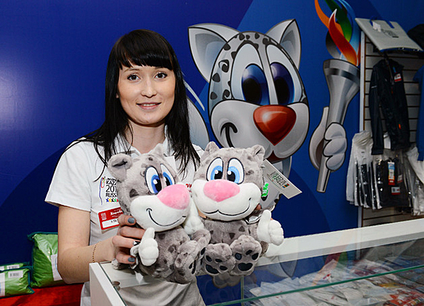 Soft toys depicting Uni the snow leopard kitten, the adorable mascot of the 27th Summer Universiade, appeared this past weekend on shelves of the official Kazan 2013 licensed merchandise fair. A line of mascot toys went on sale and already enjoys wide popularity among customers of all ages. Although the same can be said about all other souvenirs. According to Igor Sivov, Deputy Director General of the Kazan 2013 Executive Directorate, another 1,000 items of branded products for the 27th Summer Universiade are scheduled to be released any time soon.