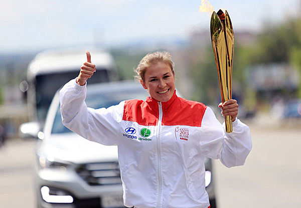 The task of carrying the Universiade Torch through the city’s streets and squares was given to top students of Izhevsk and famous sports stars, including Nadezhda Pushpasheva, a participant in the Paralympic Games in Beijing and London, 20-time Russian champion and member of the Russian national table tennis team; Ivan Kuznetsov, a bronze medal winner at the World Championships and a member of Russia’s national sledge hockey team; Vladislav Lekomtsev, the 3-time world champion and member of Russia’s cross-country skiing team; and volunteers representing youth public organisations and the companies sponsoring the Summer Universiade.