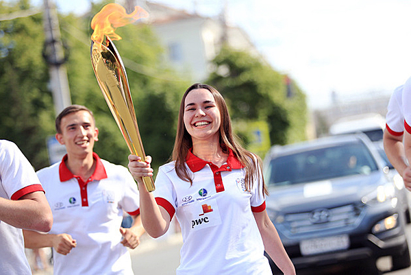 CHEBOKSARY – On 10 June, the Universiade Torch arrived in Chuvashia. The Universiade Flame was greeted by residents of Cheboksary. 40 Torchbearers carried the Flame along the streets of Chuvashia’s capital. Cheboksary has become the 23rd city of the Russian leg of the Universiade Torch Relay.