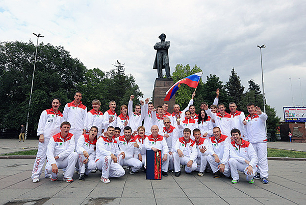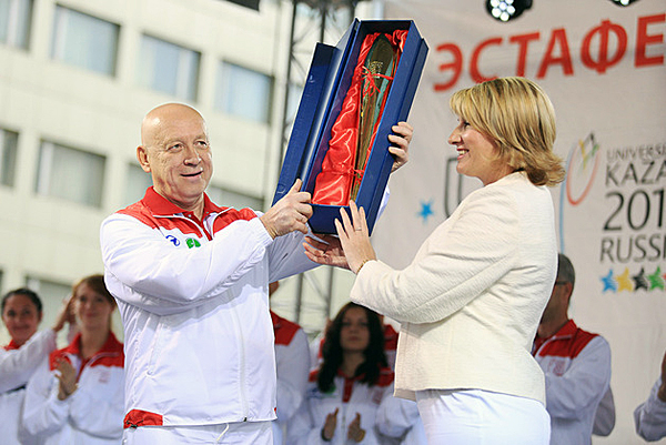 The honour of being a Torchbearer in the Relay was granted to the best students of the city, members of the government, famous athletes, among them Artur Artenyan, repeat European champion and Russian bronze sambo medallist, and Oleg Grigoryev, Master of Sport, member of the Russian national track and field team and bronze medallist of Russia, as well as volunteers, representatives of youth organisations and partner companies of the 2013 Summer Universiade.