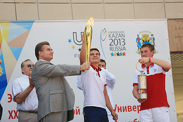 The region’s top students, government officials, outstanding athletes, volunteers, members of youth associations as well as employees of corporate partners to the 2013 Summer Universiade were given the unique right to carry the main symbol of the World University Games in Orenburg.