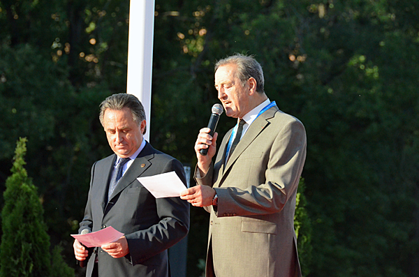 The village was then officially declared open in English by Claude-Louis Gallien, in Russian by Vitalyi Mutko and in Tatar by Rustam Minnikhanov.