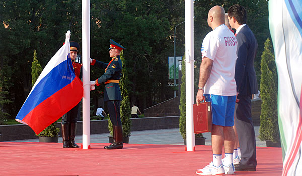 KAZAN –Today, July 1st, the first Flag Raising Ceremony took place in the Athletes’ Village. A tradition to welcome each delegation and confirm its settlement into the Village, which for a fortnight will be their home. The inaugural ceremony was in honor of the host country, Russia.
