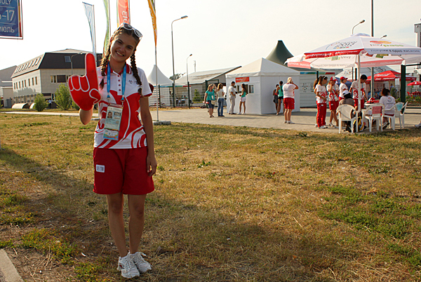 The girl who aspires to be a journalist was on duty in the field. Shyhutdinova is even willing to stand all day under the sun as she eagerly waved to every car passing the Bustan Sport Complex where she was stationed on Sunday. She also wants to see the volleyball match there.