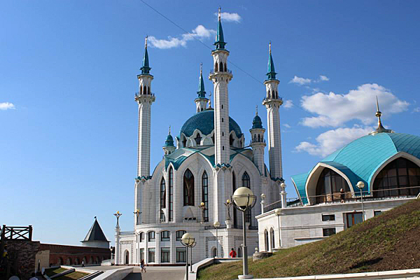 The blue-dome-topped mosque was built in 2005 and was designed to mirror the architect of “Kazan caps”, the hats worn by prior Kazan leaders.