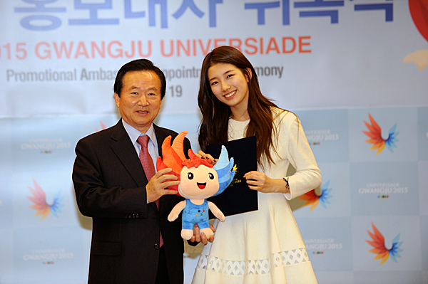 2015 Gwangju Summer Universiade Organizing Committee (GUOC 2015) appointed Suzy, as an ambassador of the 2015 Gwangju Summer Universiade at the Gwangju City Hall, on Nov. 19th. The appointment ceremony was attended by Kang Un-tae, chairman of GUOC and Mayor of Gwangju City, Kim Yoon-suk, Secretary-General of GUOC, and other related officials.