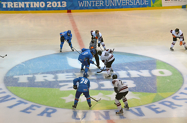 Face-off of the Men’s tournament in Alba di Canazei ITA vs LAT