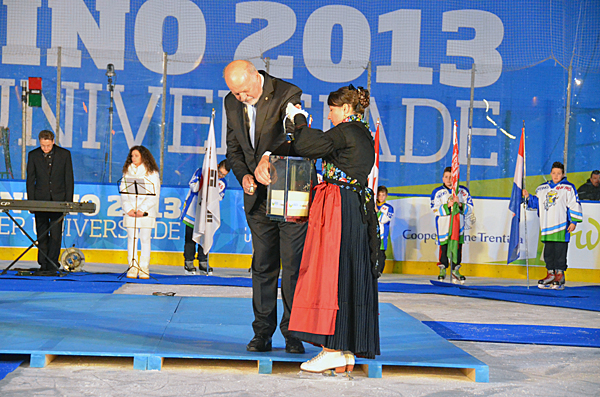 At the end of the Closing Ceremony the FISU flag passed hands. From the Trentino OC to the FISU President who delivered it to the Granada OC that will host the games in 2015. The ceremony ended with a cultural performance of the new hosts.