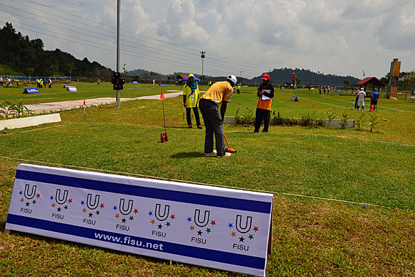The single fairway competitions planned for the night session suffered from the weather condition. The monsoon rains of Malaysia interrupted the men’s competition when Wannapin (THA) and Sumariyanto (INA) had already qualified for the semi-finals while the quarter-finals Wicaksono (INA)/Chaisongkram (THA) and Aktaruzzaman (BAN)/Adupa (UGA) as well as the ladies’ competition were postponed to 23 October in the morning due to impracticable course.