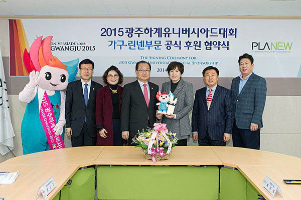 On 3 December, GUOC signed a partnership agreement with YOUNG SHIN F&S as Official Sponsor in the furniture & linen category. As an official sponsor, YOUNG SHIN F&S will supply 14 items and over 24,000 units of furniture and linen in the Athletes’ Village. Meanwhile, the GUOC will allow the rights to use the Universiade Gwangju 2015 name and logo. The company developed a brand called “PLANEW” and has been sponsors for a number of international events such as the 2003 Daegu Summer Universiade, 2011 Daegu IAAF World Athletics Championships, and 2012 Yeosu World EXPO.