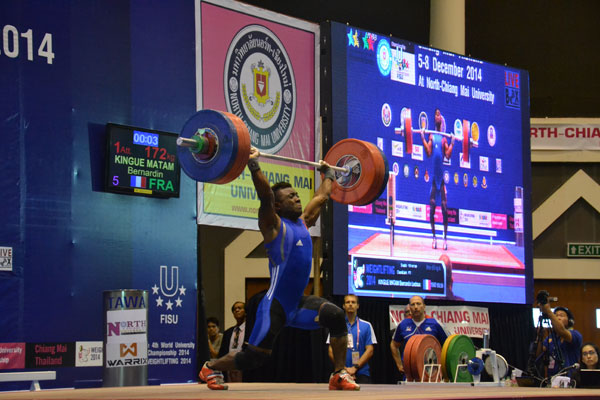 In the men’s 69kg a strong fight emerged from the competition between three lifters. If Kinge-Matam (FRA) took the gold in the snatch with a 146kg lift beating his personal best, ahead of Bunsuk (THA), 140kg and Kasai (JPN), 136kg, the Frenchman let the title in the clean and jerk competition to Bunsuk while silver went to Kasai and Bronze to Kinge-Matam. All three athletes ended up with the same lift (172kg) and the medals were attributed according to their bodyweight. Kinge-Matam, a silver medalist at the Kazan 2013 Universiade and participant at the London Olympics nevertheless took the gold in the total (318kg), Bunsuk taking silver (312kg) and Kasai the bronze medal for Japan (308kg).