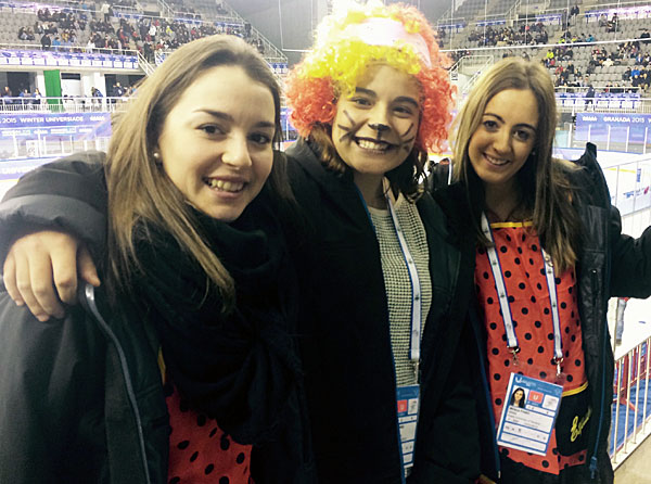 “Since we are rookies in the national university team, we had to go through a kind of ritual”, explains Ines Almendro from the San Pablo University in Madrid. “We had a choice, dress up like this [cf. photo] or find our equipment wet. We prefer to play in dry gear, so the decision was made quickly”, she chuckles. The Spanish girls are always in the mood for a good joke, bit once on the ice they mean business. Although one of the weaker teams at the Winter Universiade, they give it a 100% each game they play. The spectators appreciate that as they are coming back each game, the rink’s bleachers are filled to the brim.
