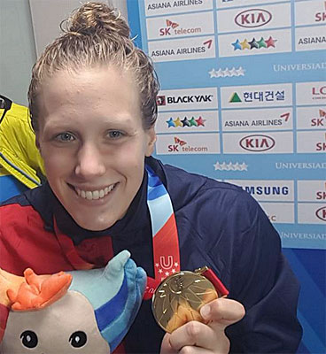 GWANGJU – No better way to celebrate the ‘4th of July’ – ‘Independence Day – for an American with a gold medal victory … and that’s exactly what athlete Sarah Henry did, clocking the best time in the Women’s 400m Individual Medley at the Universiade in Gwangju. When asked about her feeling of winning a golden medal on such an important day for Americans, she said: “It means everything, it doesn`t get any better than that. I hope when everybody wakes up in the morning, and discover that I got a golden medal, that`ll be my gift for them.”