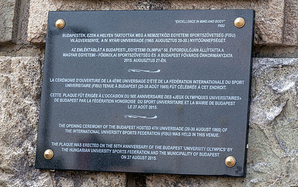 The Universiade in Budapest has been the last major multi-sport event organized in Hungary with 1,729 participants from 32 countries. At the occasion of this ceremony, a special commemorative plate has been inaugurated on the wall of the Budapest Stadium where the Opening Ceremony of the Universiade was organized.