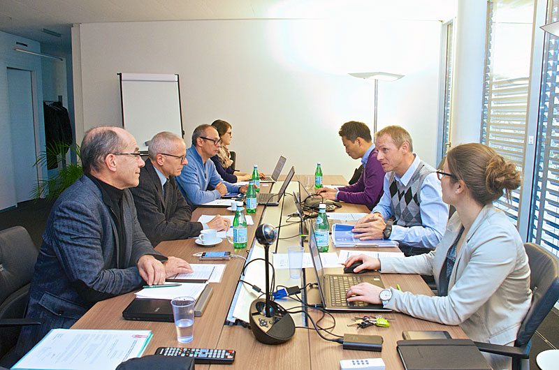 Later on, the group of Lucerne had a chance to meet with FISU President Oleg Matytsin and Secretary General/CEO Eric Saintrond. They had some talks about handing over of the bid books to FISU, the programme of the evaluation visit, the presentation of the candidature in front of the EC at the meeting in Brussels in March 2016 and the attribution agreement. President Matytsin underlined the fact that the candidature of Lucerne-Central Switzerland is important both for FISU and Switzerland, and Eric Saintrond said that for the first time FISU is partner in such a project from a very early stage. On behalf of the Swiss University Sports Federation, Leonz Eder thanked the FISU top leaders and the WU Department for the trust in the SUSF and its partners from Lucerne and for the constructive way to develop this project hand in hand. Urs Hunkeler also thanked FISU for the very fruitful feedback to the draft of the bid book, and he guaranteed that the bidding committee will undertake all efforts to provide a candidature dossier to the FISU Executive Committee which will fulfil the expectations of the FISU.