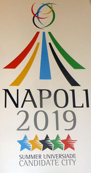 NAPLES – Following the official confirmation of the candidature of Naples (ITA) for the 2019 Summer Universiade, a FISU delegation, consisted of the Summer Universiade Director Marc Vandenplas, the Summer Universiade Manager Jing Zhao and the Executive Assistant Melanie Stallecker, is conducting a technical evaluation visit to the city from 22 to 26 February in order to further review its candidature profile.