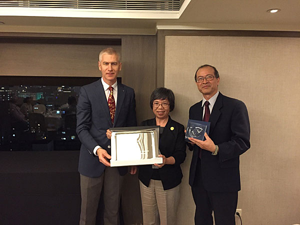 From left to right: FISU President Oleg Matytsin, OC CEO Li-Chiung Su, Director General of the Sports Administration of Ministry of Education Jow-Fei Ho