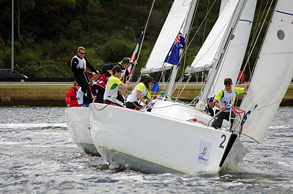 PERTH – Perth’s iconic Swan River has set the perfect scene for the 2016 World University Sailing Championship. 82 student-athletes from nine nations began the first day of competition on Monday 26 September. The first three days enabled athletes to familiarise themselves with their opponents through round robin racing. Tuesday tested the athletes’ ability with rough weather conditions closing competition early. At the completion of this stage, for the Open competition, Boulden (Australia) lead the field over Galati (Italy) and Dargaville (Australia). In the Women’s competition, Switzerland’s Bezel topped the ranking, with Koh (Singapore) and Parker (Australia) closely behind.