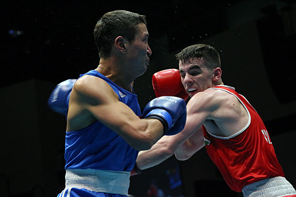 The 16th bout of the day was the welterweight fight (69 kg) between Jian Gu, Chinese competitor and Eqzon Maliqaj, Swiss boxer. The Chinese seemed to have the edge with the longer range punches over the opponent, but it turned out to be Maliqaj who landed more punches at Gu’s face, resulting in a count in the first round. Gu, in the following round, still could not hit the target, so the Swiss aggressively threw strong punches at Gu’s eyebrow leaving cuts. Maliqaj delivered a TKO in this round.
