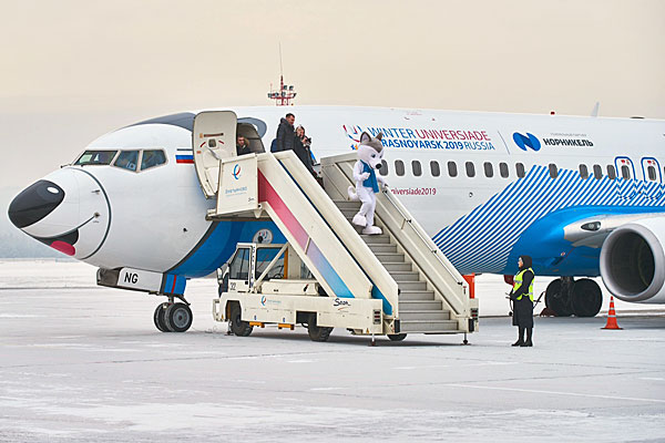 KRASNOYARSK – On 12 January, the 2019 Winter Universiade branded aircraft of the company NordStar Airlines, arrived from Norilsk to Krasnoyarsk. Upon the initiative of the MMC Norilsk Nickel, the General Partner of the 29th Winter Universiade Krasnoyarsk 2019, Boeing 737-800 was painted in the brand colours of the upcoming event.